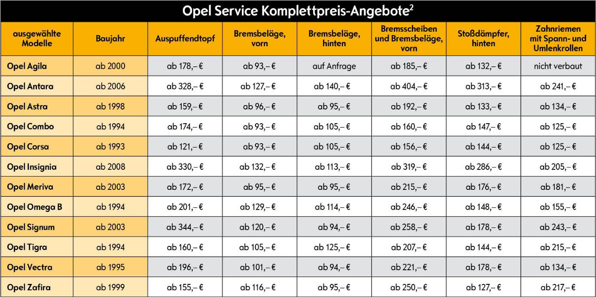 2 Die genannten Komplettpreis-Angebote, je nach Modell und Motorisierung, verstehen sich als Komplettpreise inklusive Teile und Lohn.